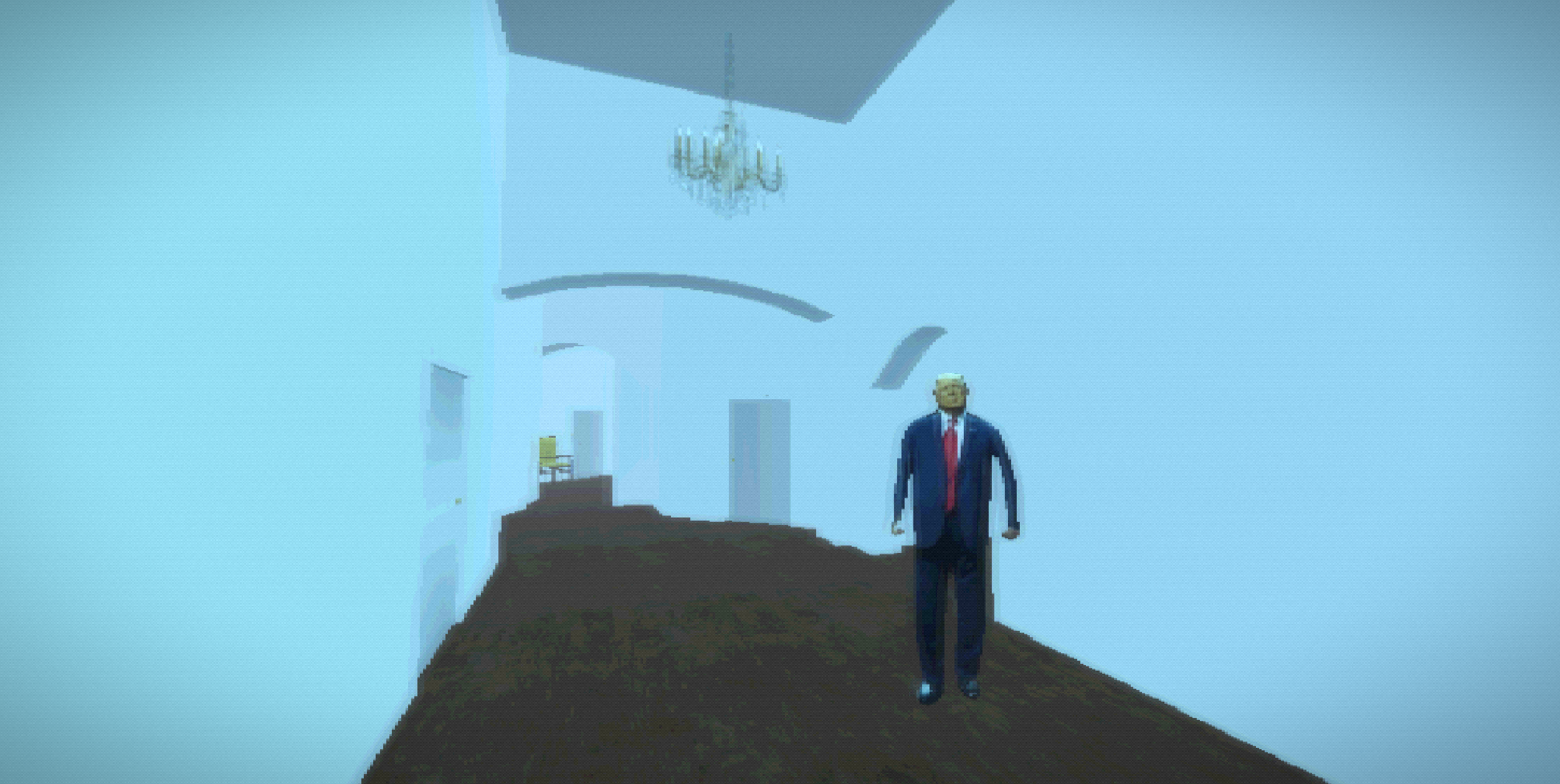 You are a politician trapped in a nightmarish, maze-like house during a tense political summit. Navigate twisted corridors and avoid the unpredictable leader while gathering executive orders and the key to escape. One wrong encounter could doom your nation with crippling tariffs, international humiliation and you getting fired. This PS1-inspired survival horror game combines political satire with classic stealth gameplay. Can you maintain diplomatic relations while surviving the labyrinthine halls of power?